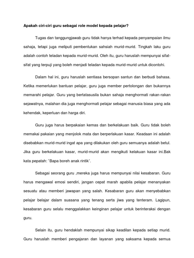 dunia ilmu pengetahuan dan pendidikan: SBM D C4 GURU ... from 1.bp.blogspot.com Guru juga berperanan sebagai role model yang menjadi contoh ikutan pelajarnya dan juga masyarakat sekitar. Sebagai seorang guru, sudah seharusnya kita memberikan nasihat atau arahan terkait dengan akhlak dan teladan yang baik. Tepat waktu hadir di kelas, tepat waktu mengakhiri kuliah tepat waktu memberikan umpan balik, dst. Selain daripada itu, guru juga berperanan sebagai agen perubahan dan sosialisasi di dalam kalangan masyarakat. Kualitas pendidikan sangat bergantung pada kualitas guru. Kehadiran sosok pemateri sebagai role model bagi guru beserta kepala sekolah yang memungkinkan ketiga pihak dapat duduk bersama sembari berdiskusi. Guna mencerdaskan generasi penerus bangsa, terkadang para guru bertindak lebih dengan meringankan beban siswanya yang terkendala ekonomi. Sebelum membahas tentang guru sebagai aktor atau model kita perlu mengetahui, bahwasannya sebaik baik suri teladan adalah rasulullah saw.