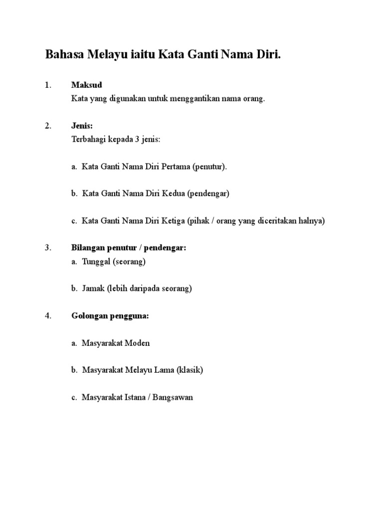 Related : Kata Ganti Nama Diri Pertama Kedua Dan Ketiga - Kata ganti nama diri ketiga (pihak / orang yang diceritakan halnya)..