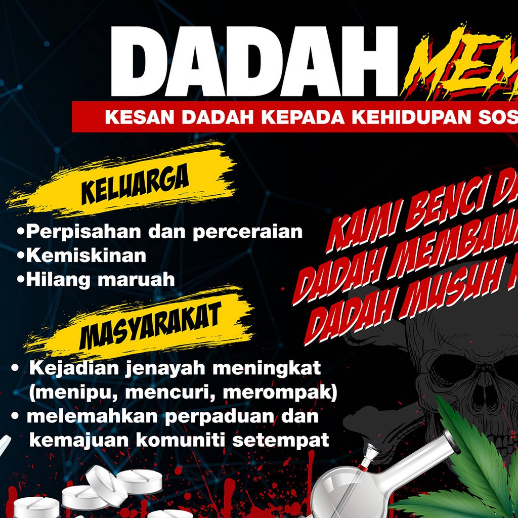 Kesan buruk ke atas kehidupan. Bagi menjamin kesejahteraan negara pada masa hadapan, adalah penting untuk melahirkan generasi yang bebas daripada penyalahgunaan dadah. Rasa lebih bertenaga dengan peningkatan aktiviti fizikal, hilang mengantuk, peningkatan tumpuan perhatian. Dadah adalah bahan kimia yang mempengaruhi penyalahgunaan dadah juga memberi kesan kepada produktiviti dan kejayaan anda di tempat kerja. Kesan utama penyalahgunaan dadah kepada masyarakat ialah keharmonian dan suasana hidup masyarakat menjadi tidak tenteram akibat terganggu dengan peningkatan aktiviti jenayah yang majoritinya dilakukan oleh para penagih. Diri penagih boleh menjadi beban kepada keluarga kerana terpaksa menghabiskan masa, tenaga dan wang yang banyak untuk merawatnya. Menteri kesihatan ucap takziah kepada keluarga samson. Kesan mudaratnya lebih berbahaya daripada dadah organik kerana dadah jenis sintetik ini mempengaruhi tingkah laku kepada pengguna pada 2009, hanya 340 jenis nps ditemui. Kesan dadah kepada keluarga & kesihatan (jun 2021). Kesan dadah kepada keluarga & kesihatan. Contoh kesan dan pesan sekolah. Tubuh badan yang siaht menjadi lemah. *menjatuhkan maruah dan nama baik sesebuah keluarga sesiapa yang menagih dadah akan mencemarkan nama baik keluarganya disebabkan pihak masyarakat akan menggunakan pandangan yang sama terhadap penagih dan keluarganya.